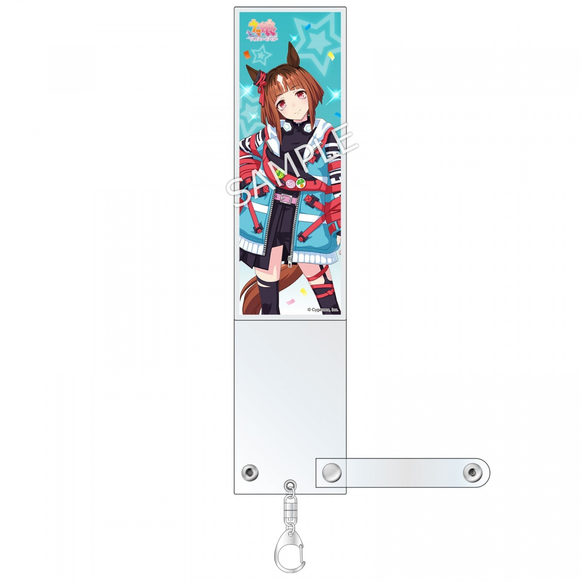 ブレードの上から被せて「推しウマ娘仕様」のブレードに! ブレードの光が透けるようになっているため、本ホルダーを取り付けたまま応援することができます。 キーリング付きで、ブレードごとカバンなどに取り付けることも可能です。
