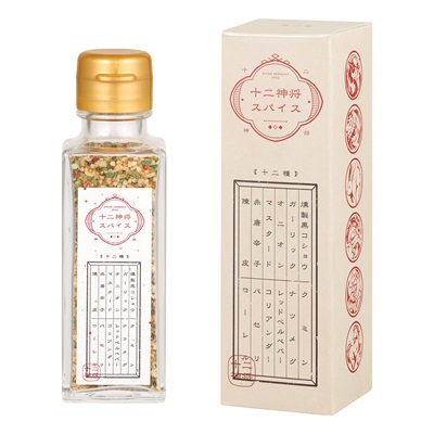 十二神将にちなんで12種類のスパイスを調合したオリジナルスパイス!肉、魚、野菜といったどんな食材とも相性のいい万能スパイスです。キャンプやBBQはもちろん、自宅でのお料理にも大活躍!
