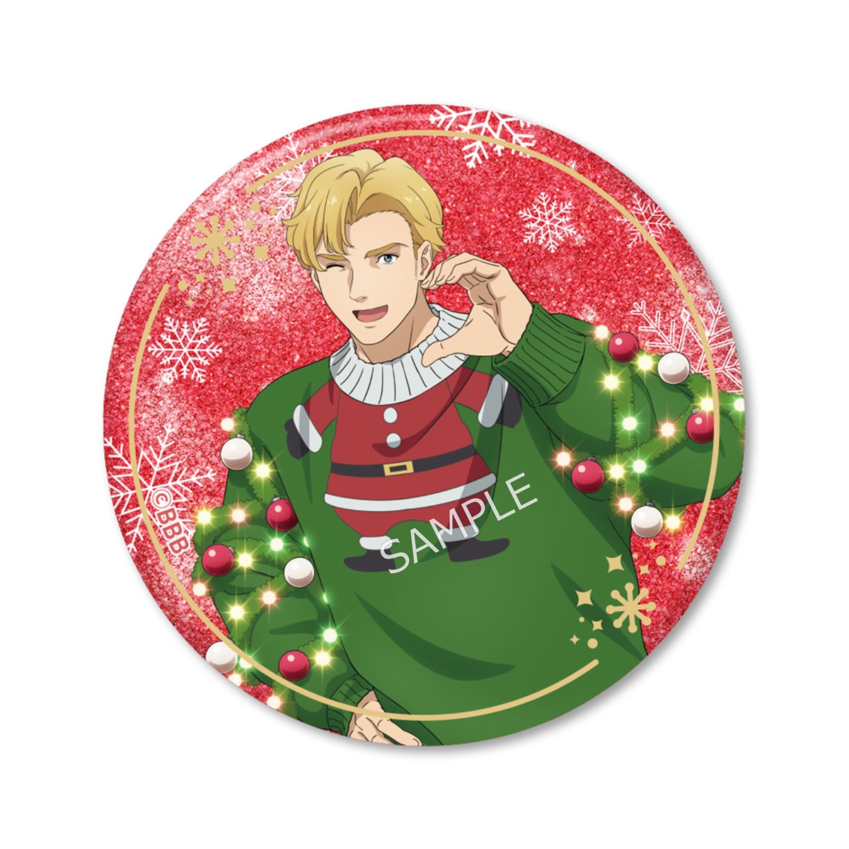 クリスマスをテーマに描き下ろされたイサミ、スミス、ルルの新規イラストのグリッター缶バッジ3個セットです