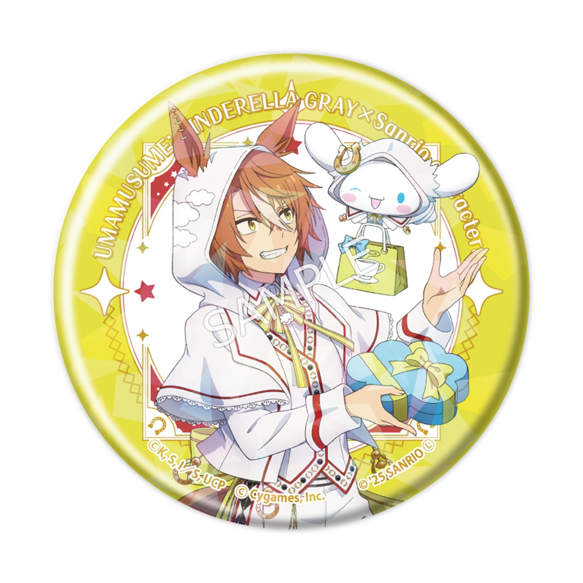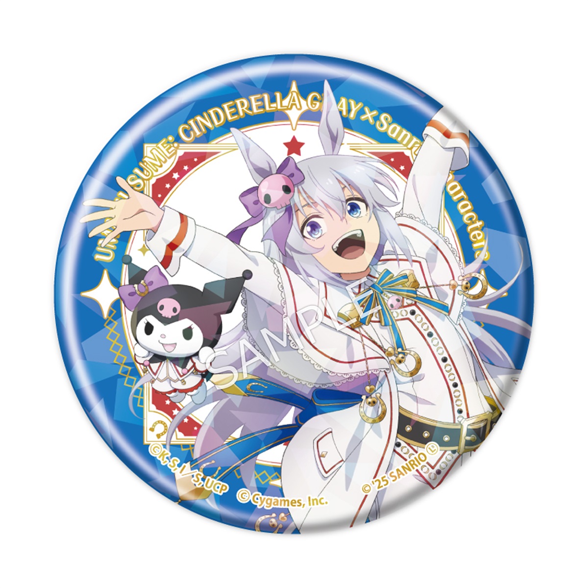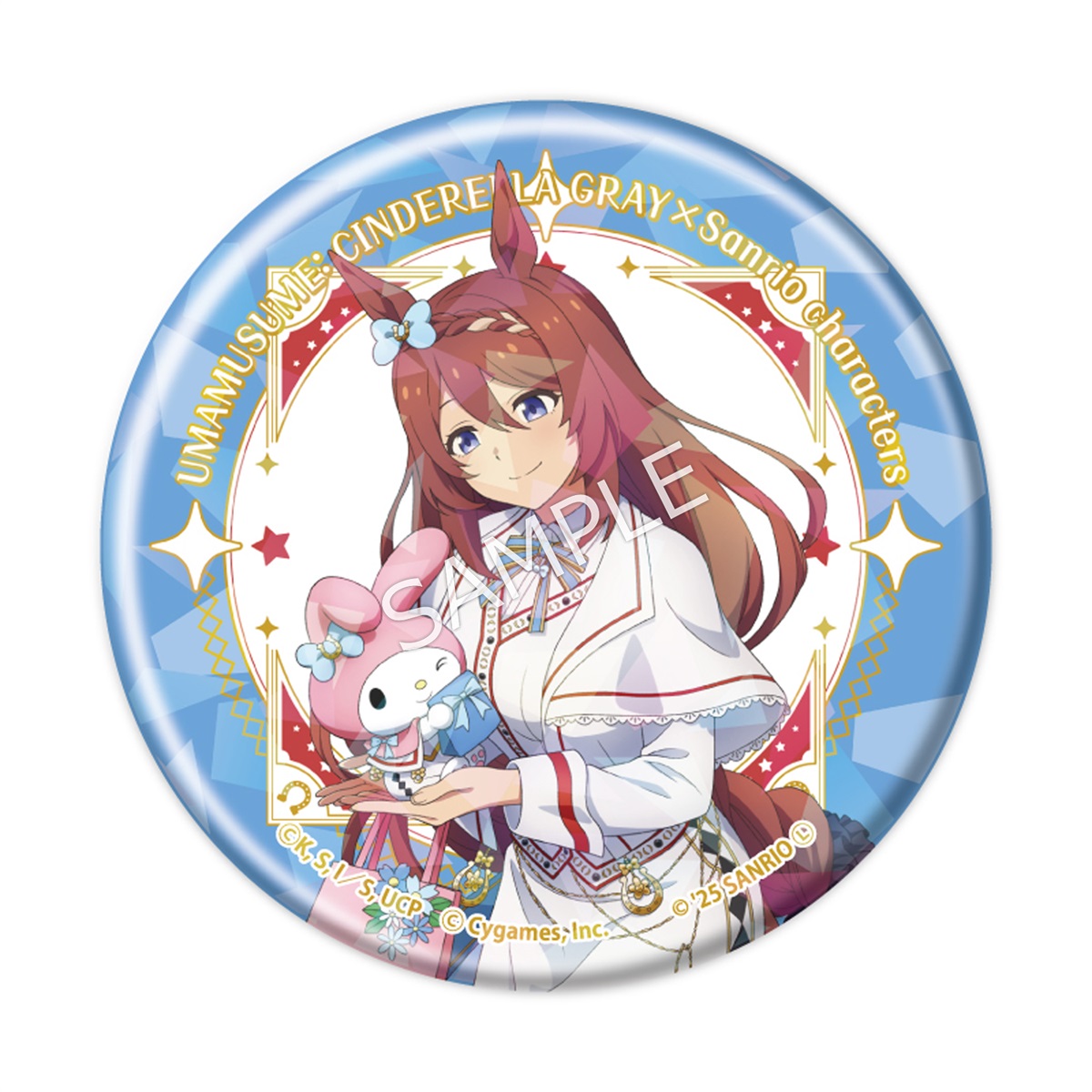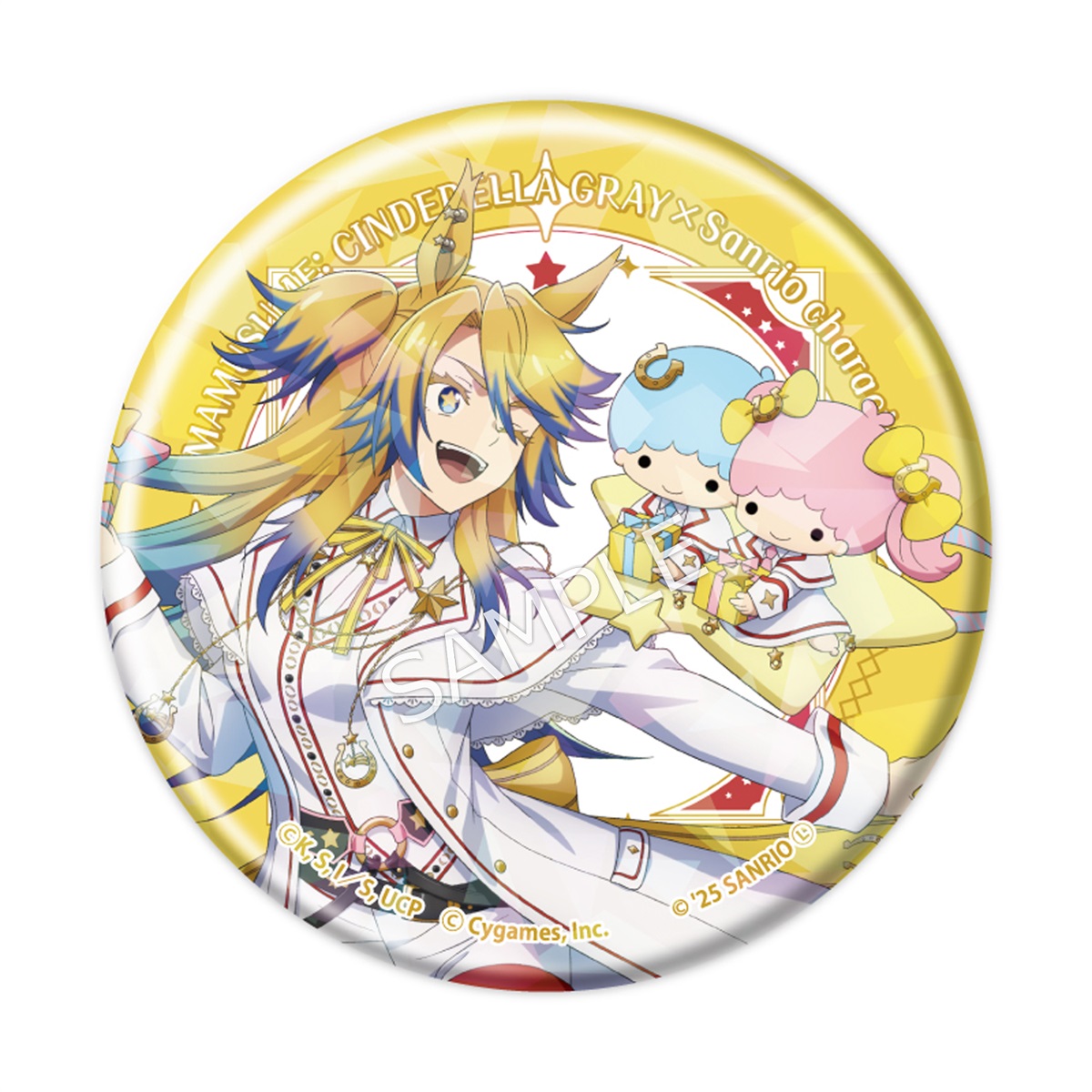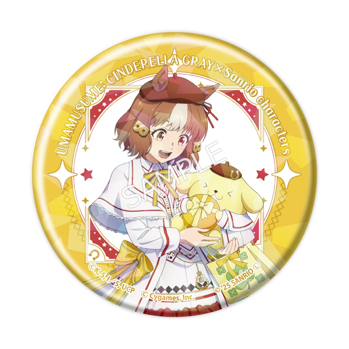 ラインナップ:全6種(オグリキャップ×ハローキティ/ベルノライト×ポムポムプリン/タマモクロス×クロミ/スーパークリーク×マイメロディ/ディクタストライカ×シナモロール/オベイユアマスター×リトルツインスターズ)サイズ:約Φ57mm素材:ブリキ、鉄メーカー:株式会社TBSグロウディア©久住太陽・杉浦理史&Pita・伊藤隼之介/集英社・ウマ娘 シンデレラグレイ製作委員会 © Cygames, Inc.