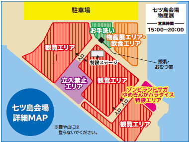 ※今回、七ツ島大橋は会場ではありません。花火打上げ時は通行止めになります