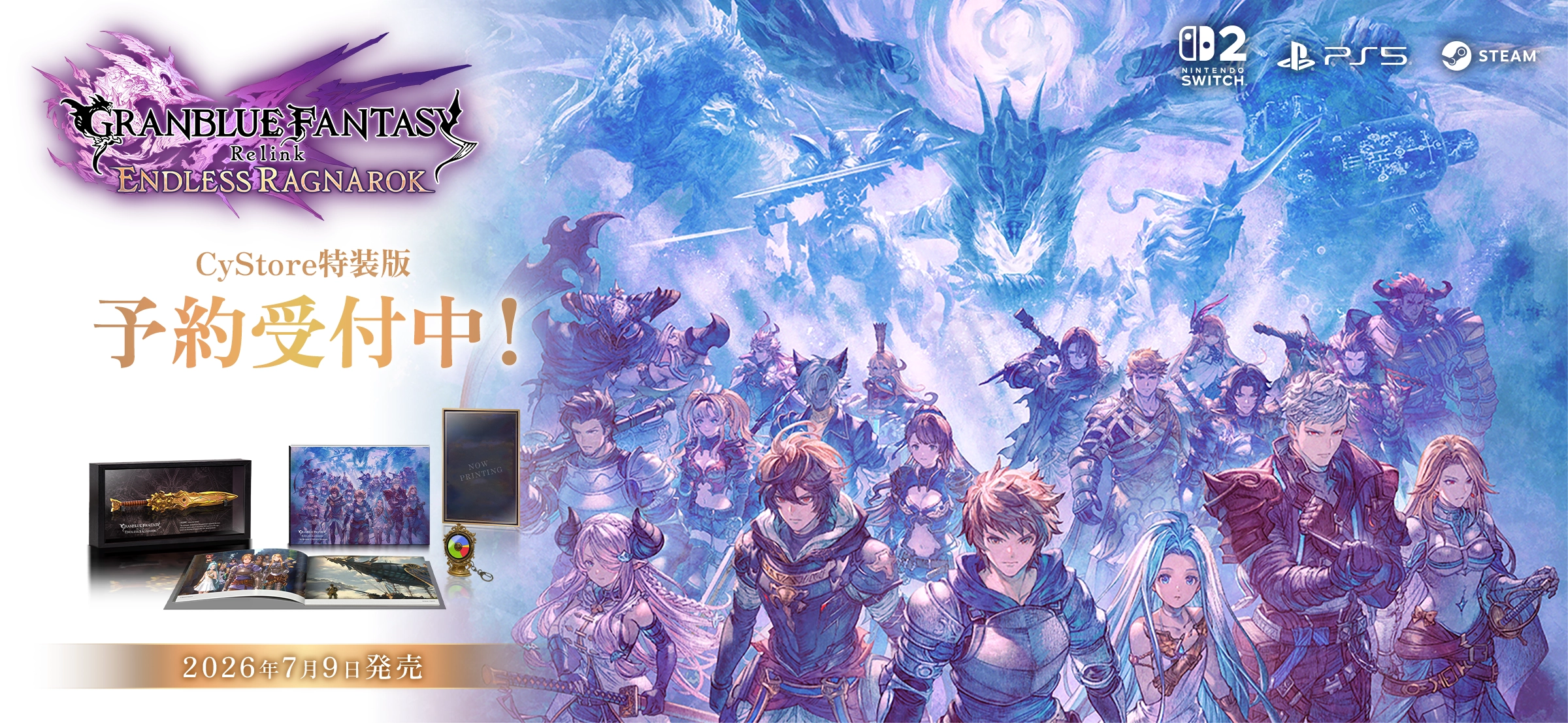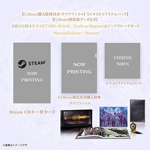 『GRANBLUE FANTASY: Relink - Endless Ragnarok』の発売を記念して、 ゲームソフトと豪華オリジナルグッズがセットになった「CyStore特装版」が登場! 同じくCyStoreオリジナルの先着購入特典もご用意しておりますため、お見逃しなく。